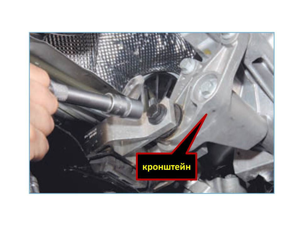 Открыли капот, сняли короб воздушного фильтра, сняли аккумулятор и его короб, сняли защиту картера, подперли снизу домкратом коробку, открутили центральный болт крепления подушки(крепится к самой коробке), открутили четыре гайки(крепятся к самому кузову), сняли подушку. Она оказалась оригинальная, целая на вид, как ни странно. В обратном порядке установили подушку, без проблем, немного двигая при этом коробку. Далее приступили к нижней, открутили болт крепления задней опоры к подрамнику и болт крепления опоры к кронштейну коробки. Но вот обратный процесс немного усложнился :) пришлось открутить кронштейн(чтобы свободнее прошла подушка) и поиграть домкратам, поднимая его то вверх, то опуская вниз.