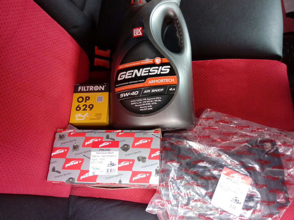 После осмотра ходовых узлов(подвеска, тормоза, жидкости), решено было прикупить масло для ДВС, соответственно фильтр для него и наконец подушки КПП(верхняя и нижняя).