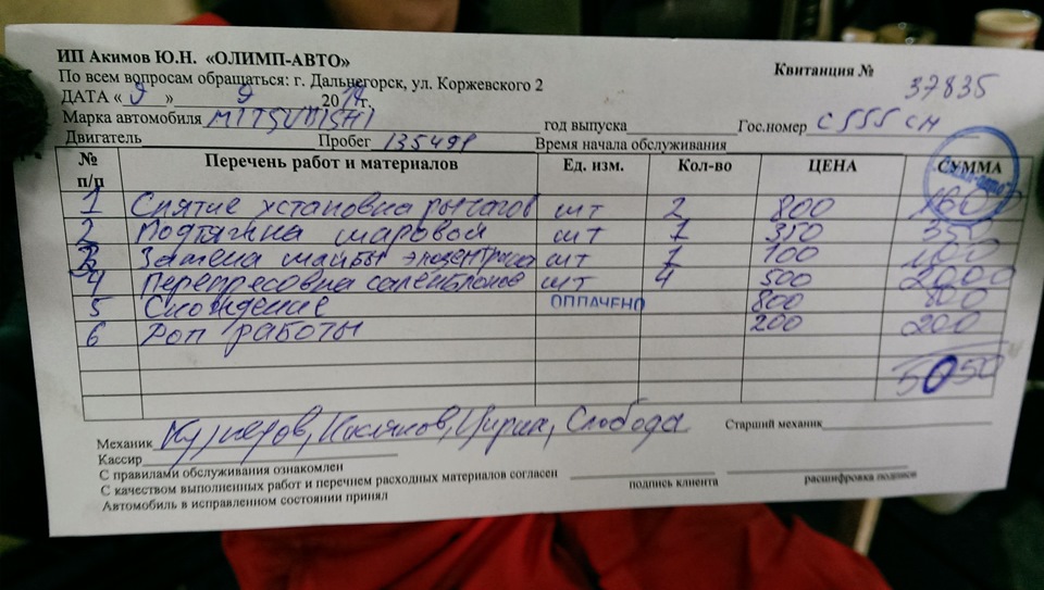 даже не угадывал)) сталкивался и этими профи мастерами не раз. Мне один хороший знакомый в горелом делает все по ходовке. Он занимается чисто ремонтом ходовки, и за работу мало берет. А в олимпе я только развал делаю!)
