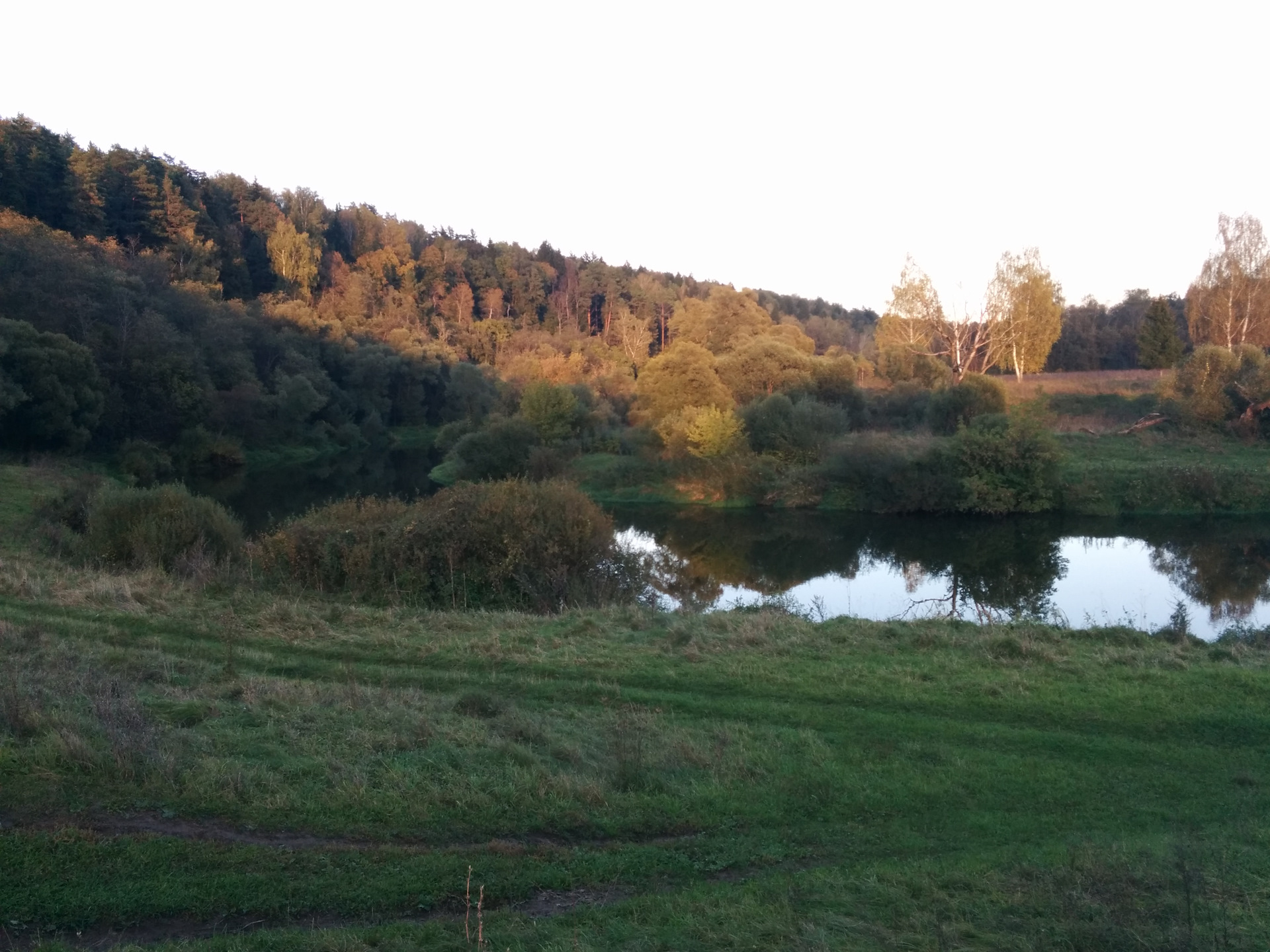 Всем привет! Приехали с детьми к родителям, немного посидели, поболтали. Хорошо в деревне! И тут мысль. Погода нормуль, а не прокатиться нам. Отец оказался, сослался на дела. Значит сына оставляю ему в помощь, а сам с мамой и с дочкой кататься! Решил съездить на р. Нару. Немного асфальта, на нем послали Калужских гаишников куда по дальше за остановку без причины и мы на полевых просторах. Круть, полная свобода. Солнце светит. Я по нему уже соскучился! Дожди были знатные, воды полно. Представляю что сейчас творится в лесу. Река полная воды. И нам все нравится!