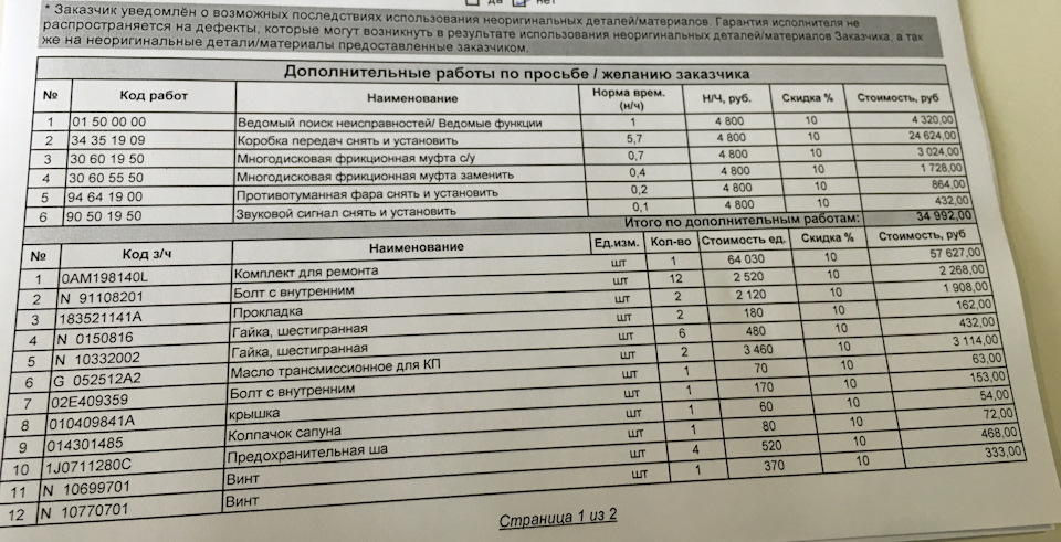 В общем приехав и все показав, заказали гудок и сцепление. Сказали что есть обновленное сцепление, но его уже заказали одному клиенту и уже прошло 2 мес, так и не пришло и неизвестно сколько ждать, посоветовал поставить которое есть на ЦС. Я не хотел ждать 2 мес поэтому согласился.