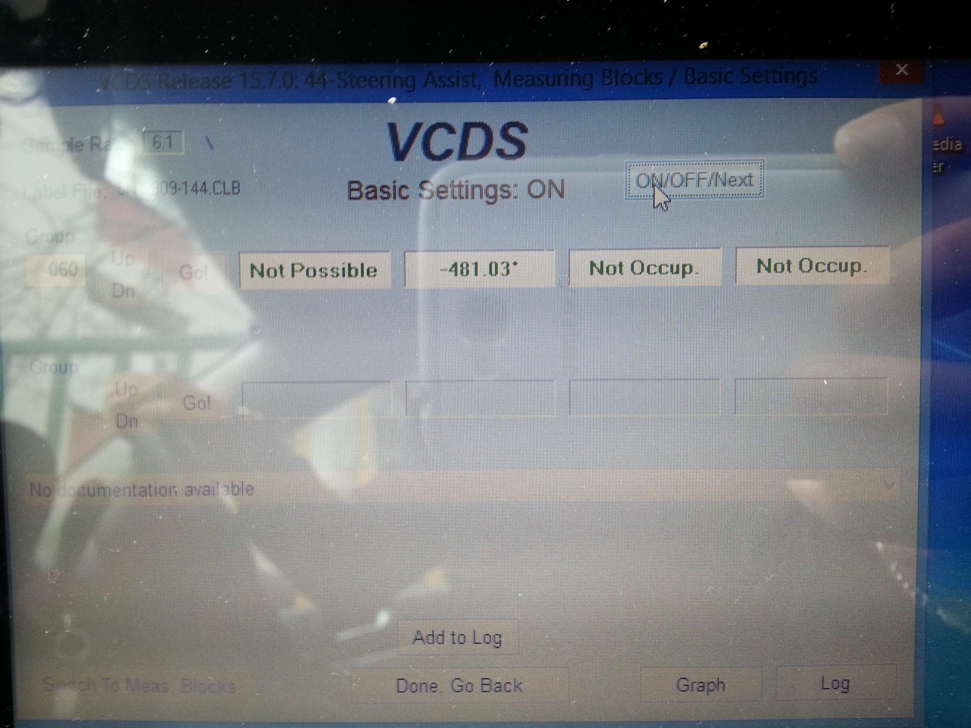 Подключаю китайского Васян Ли, 44 блок — Закрытая область, 40168 — Базовые установки — Канал 060 — Кнопка On/Off/Next. На приборке появляется желтый руль, баранку становится крутить тяжело. Кручу влево до самого упора, приборка пищит 3 раза. Кручу до упора вправо, приборка снова пищит. Выравниваю руль в 0, жму Done, Go back.