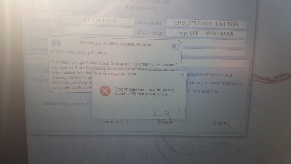 Глушу машину, включаю зажигание, ошибка снова висит. Ставлю значение DSR 0 (active), все равно висит. Ну, думаю, Издос Иваныч. Потом понял, что нужно сделать сначала адаптацию датчика G85, а потом базовые установки руля.
