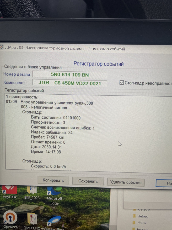 Проездил я с ней прилично, периодически подтирая. Но она все равно вылезала сразу же при включении зажигания. Пробовал выключать и включать ранее включенную DSR, 1 вместо 0 и обратно… И тут мне подсказывают, что может попробовать адаптировать руль?! Нахожу пару статей на Драйве и бегом в машину.