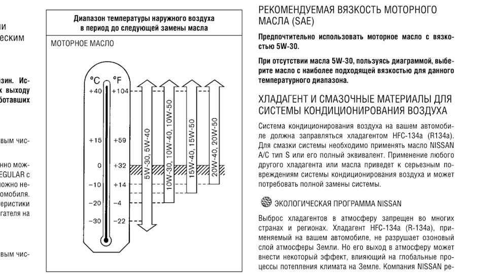 Температура воздуха и температура масла это разные вещи! Или зачем тогда антифриз вообще. В японском мануале вообще 0w-20 круглый год предписано для qr25de
