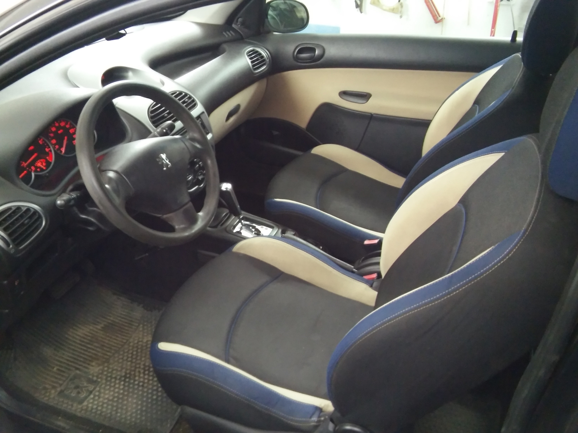 Попала мне тут в руки интересная машина Peugeot 206. Салон был с пятнами а на сидениях зеленые чехлы.