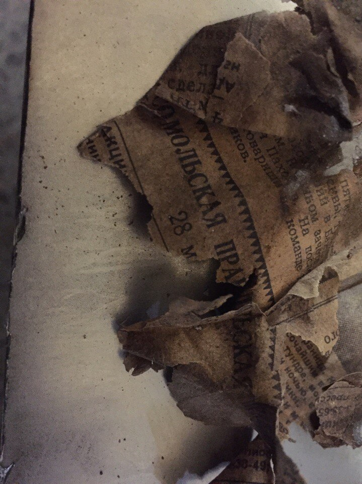 Начал я прибираться в багажнике, убирать остатки растресковавшегося автопластилина и за крышкой, которая закрывает контакты задних фонарей, нашел интересный клочек газеты.