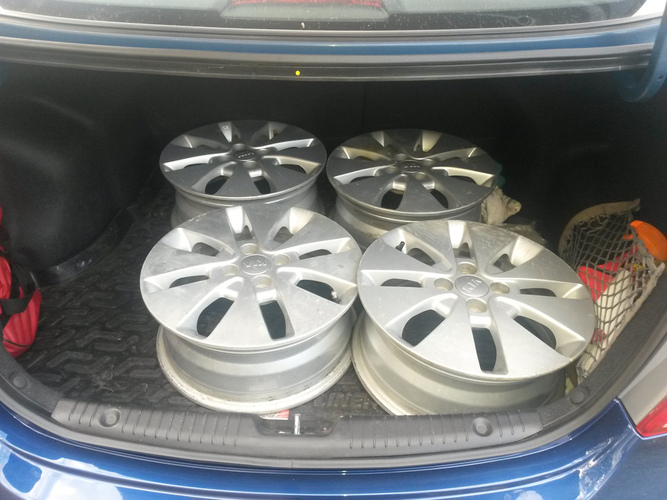 Продолжаю подготовку к зиме. На 16 колесах зимой ездить не имею никакого желания, была куплена резина 185/65/15 зимняя резина; осталось купить диски. Поездив по магазинам пришел к выводу что что-то приличное стоит денег немалых, а на то что подешевле глаза не смотрят (иногда вообще складывалось впечатление что диски лепили китайцы из фекалий в комнате где нет света). И тут подвернулась мне на сайте бесплатных объявлений продажа оригинальных литых дисков от kia rio (может быть это и реплика, хз). Подкупило то что за 4 диска просили 6 000 рублей. Цена прям для меня, поехал смотреть. Приехав оказалось что они не просто в бордюрке, а живое место на них найти сложно, как так ездить/парковаться вообще возможно не знаю (учесть еще что продавец не девушка, а мужик лет 45-50), да помимо этого все в земле, грязные такое впечатление что их закопали как клад и вот решили что кризис – надо откопать, продать и на вырученные деньги хоть пожрем. Сказать честно грязь вся эта меня мало интересовала, главное что бы не восьмеркой и главное что бы надев резину все отбалансировалось нормально. Съездил в шиномонтажку сказали да потрепанные они пипец просто но нормальные. Начали торговаться. В итоге давя на то что они все в глубоких царапинах и никто их не купит, разве что для съемок постапокалиптического фильма, я их забрал за 3 000 рублей.