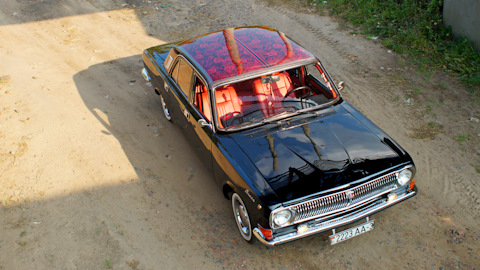 Вплотную к этой «не пытке» мы подошли только ближе к маю месяцу. За это время было выдвинуто множество версий, как же все-таки красить, а также концепций и вариантов относительно стилистики… Долго выбирали между Хохломской росписью (поскольку волга – русский авто) и классической лоурайдерской покраской под тюль. В конце концов было решено остановиться на последнем. Также было известно только то, что мы хотим получить ярко-красные розы на черном фоне. Все остальные детали было решено полностью отдать на творческую импровизацию в ходе процесса.