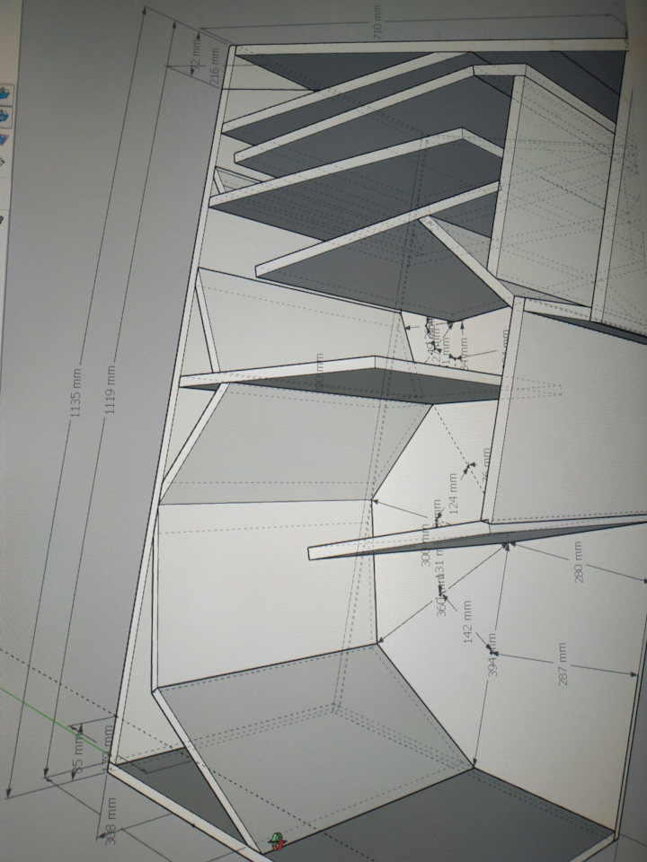 Увы, его я делал на заказ из 21мм фанеры. Чертежей нет. Но там у меня банальный параллелепипед без всяких срезов под углом.