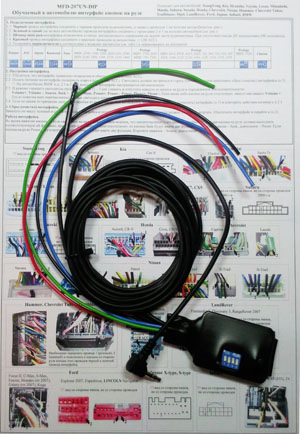 К нему прицеплен довольно длинный тонкий кабель с ИК-светодиодом, который можно спрятать в салоне где угодно (мощности излучения хватает для работы даже с переотражениями в салоне). Адаптер программируется под большое количество команд. Для Вашего варианта — самое то.