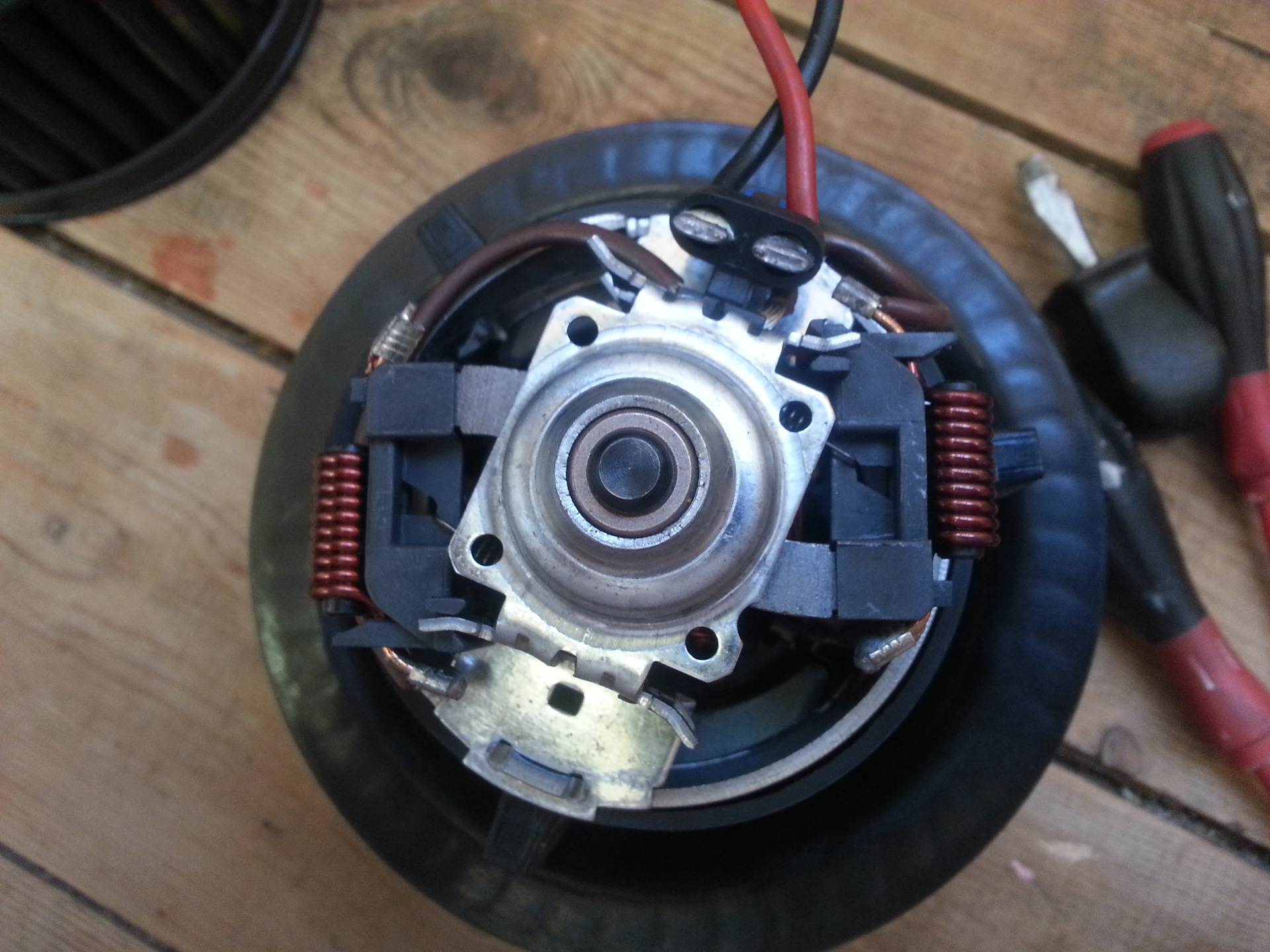 Для решения этой проблемы было два пути. Первый — это ремонт родного моторчика, делают его несколько контор в Перми, те же что ремонтируют генераторы и стартеры. Меняют все втулки, щетки, роторное кольцо и пр. В общем остается ротор да статор с крыльчаткой, хотя при необходимости и это все меняется/ремонтируется. Цена была озвучена от 3500 до 4500 руб., а где-то и от 4500 руб. Время ремонта 3-4 часа.