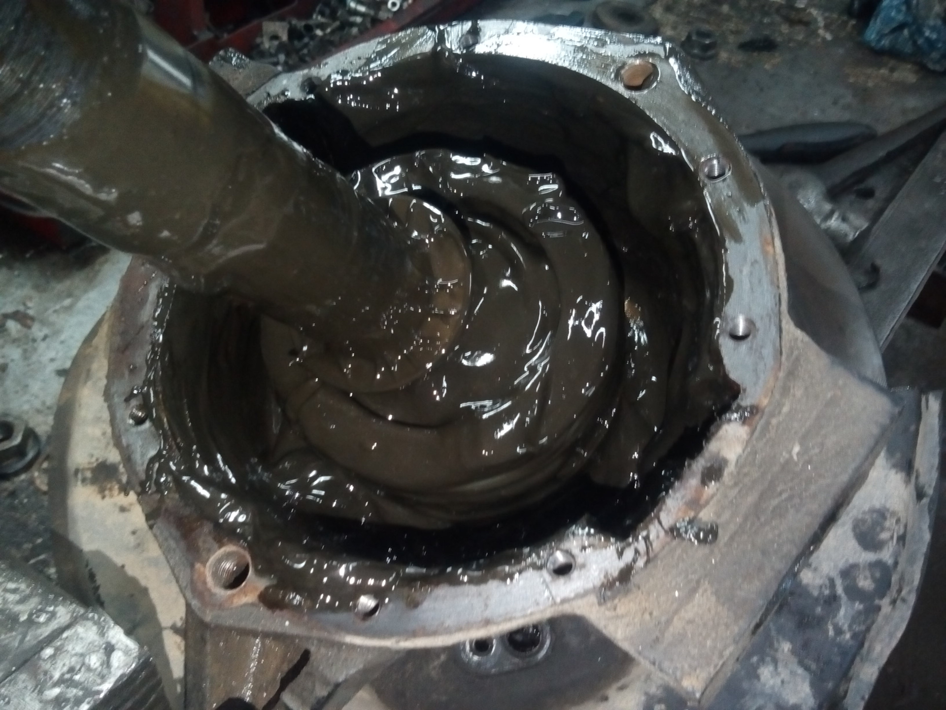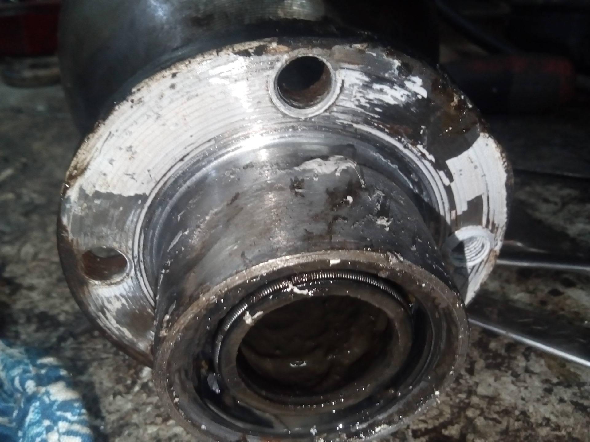 Слева верхний раздавило(ФОТО), снизу ваащщее не нашел! Справо заржавело все нахрен, зато вкладыши почти без износа. Но: на одном ушко отломлено, а второй будто насухую тёрся, весь шкворень черный как-будто в пласмассе и ржавое всё.
