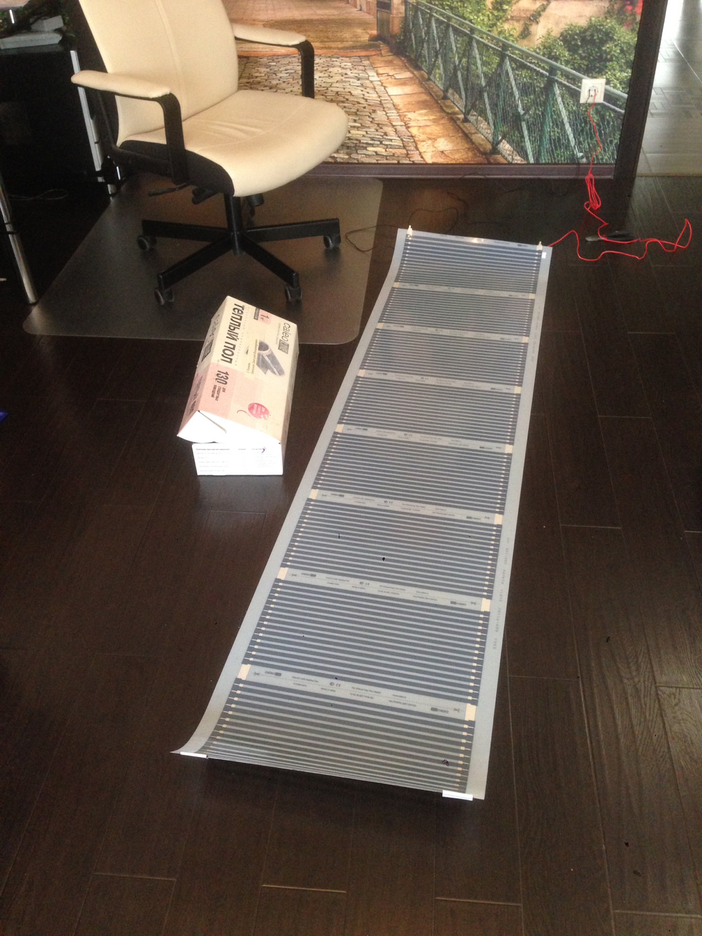 На подогрев пошла одна полоса теплого пола. На эту площадь производитель заявляет потребление всего каких-то 32,5 вт