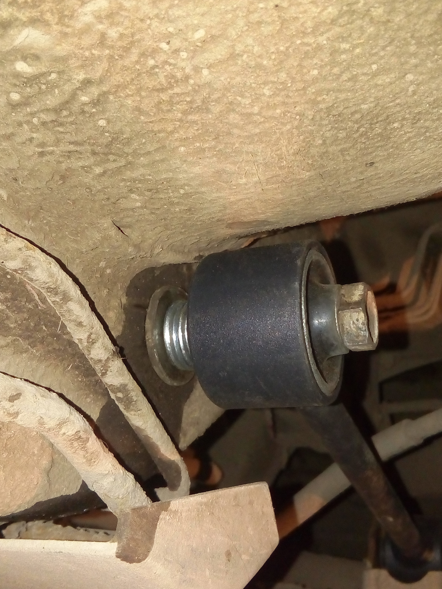 А столкнулся вот с чем: из-за большего диаметра сайлента ухо штанги полностью не садится на болт, т.к. упирается в полку усилителя пола, которой он приварен к днищу. Даже если его в этом месте подрихтовать молотком, то штанга сядет до конца, но в этом случае она будет зафиксирована усилителем пола и сайлент работать не будет, как надо, т.е. штанга постоянно будет испытывать нагрузки на скручивание от другого ее конца.