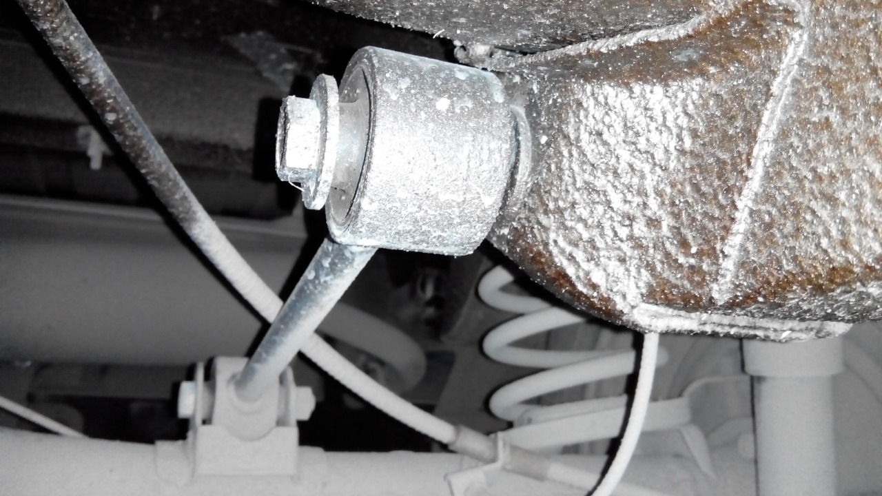 еще интересно то, что с завода на этих болтах стоят высокие гайки с капролоном и без шайб. А на всех остальных штангах (и даже на этих же коротких, но на мосту) стоят простые гайки и гроверы. Поэтому решил в данном месте заменить высокую гайку с капролоном на простую, более низкую гайку и гровер.