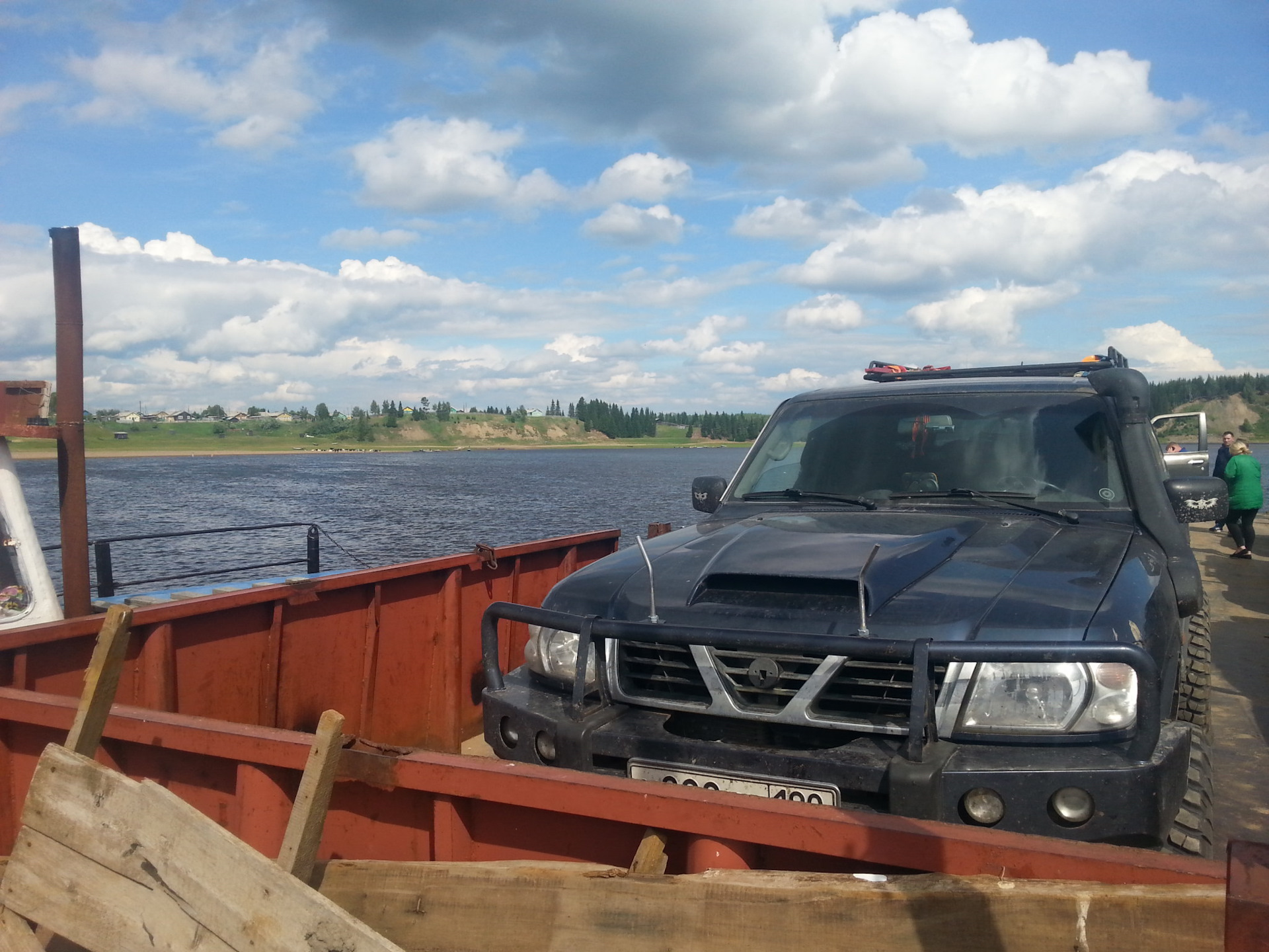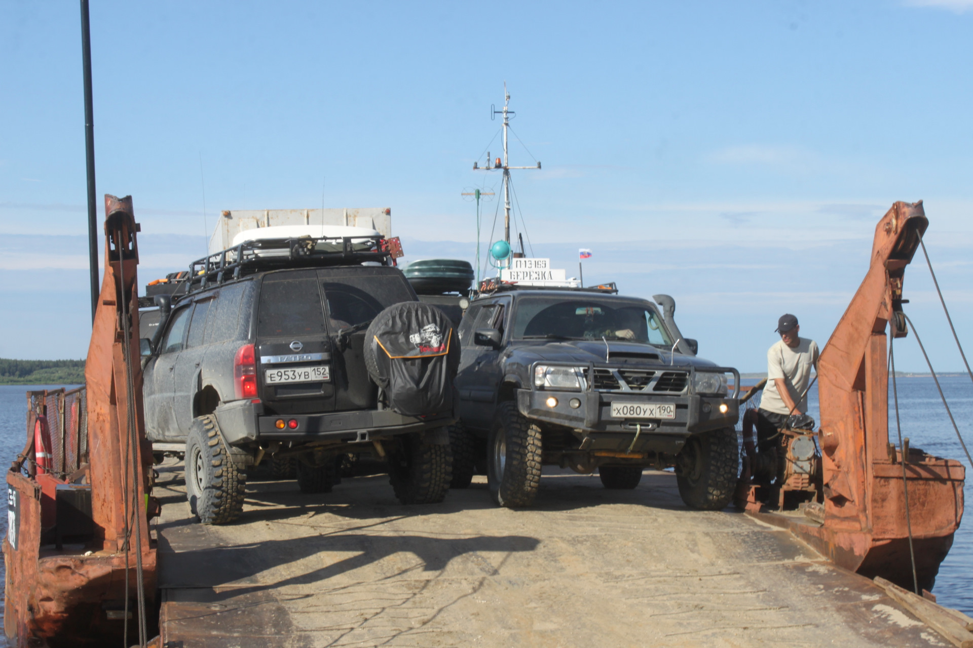 Третий паром нас, как я уже писал, ждал, там все быстро. Доезжаем до крайней деревни и крайнего на этом пути парома, в виде площадки на одну машину и лодки-буксира. Разведка местности показала, что паром еще на берегу и в этом году на воду не спускался, пока нашли паромщика, Якова, решили с ним все вопросы, тот в свою очередь озадачил тракториста спустить паром на воду, а время-то идет, а нам-то не терпиться. На скором собрании старейшин решили не ждать трактор, и оттащить паром на воду самостоятельно, ох у детворы впечатлений было… А вот для экипажа Юры итог был плачевный. В упряжки из двух патрулей участвовал Юра и Алексей, в итоге в этом «бою» над 36 симаками и порталами с большим преимуществом одержали победу купер СТТ и дикая понижайка в раздатке. По травке площадка пошла как по маслу, но съехав на песок, видать из-за разной понижайки и соответственно скорости движения, не получилось тянуть синхронно, в итоге Симаки регулярно получая команду «копать здесь» сделали свое дело, щелчок и заднее левое колесо не вращается, позже выяснится проблема, порванная полуось. На этом грустном этапе поездка для одного экипажа закончилась, отгрузив часть провианта на обратную дорогу, Юра и Артем отправились домой, ну а мы на другой берег к началу нашего пути…
