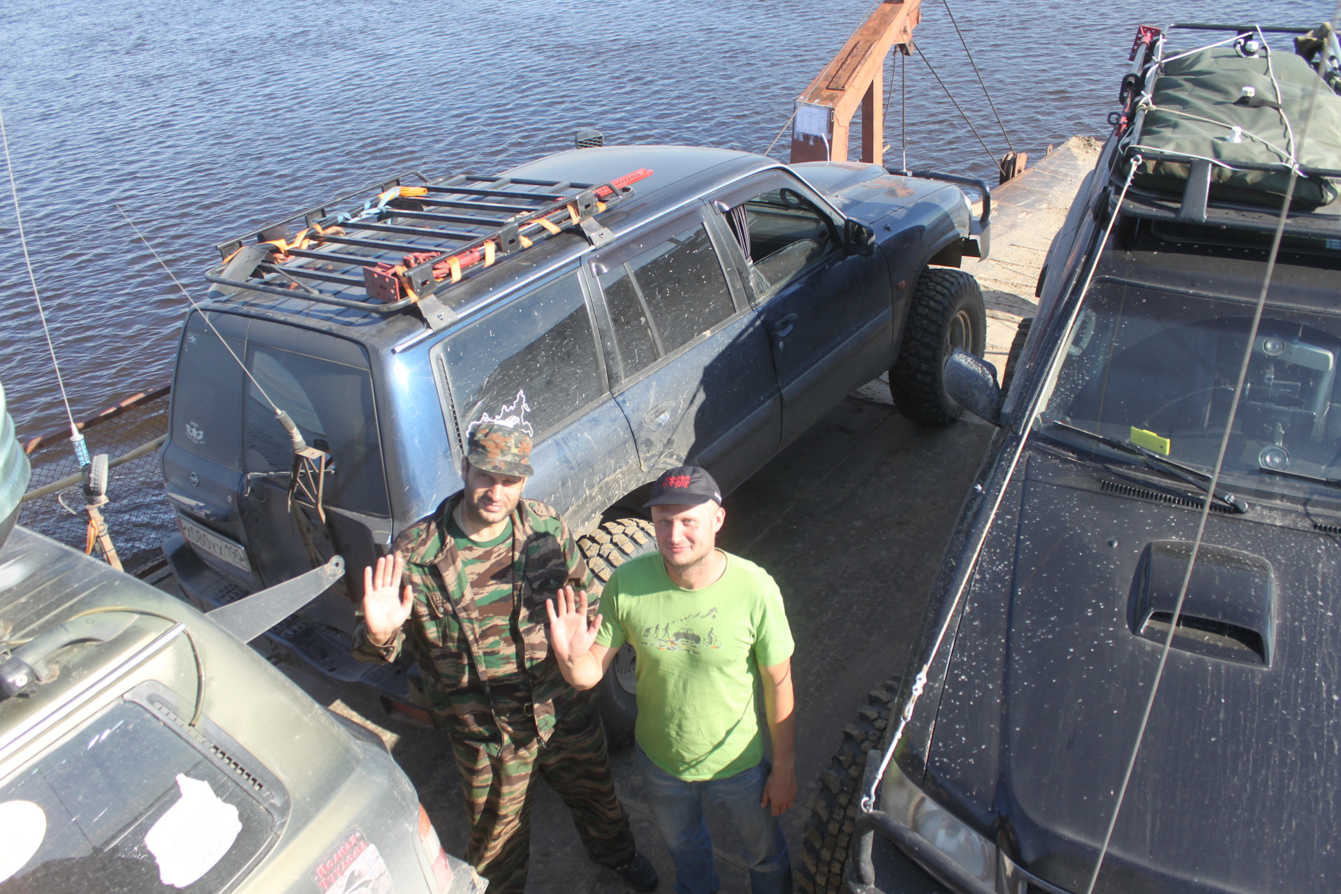 Пока шли на другой берег паромщики отзвонились капитану следующего парома, выяснили время во сколько он отчалит, и «застолбили место на 4 внедорожника», забегая вперед, скажу, что у них там все отработано, по цепочки с одного парома звонят на следующий и там капитан уже знает сколько машин к нему направляется, тем более чем дальше, тем меньше машин. У второго парома пришлось постоять почти 2 часа, перекусили, посмотрели, что подъезжает много машин, даже иногда возникали мысли о порядочности очереди и желании капитана кого брать, кого нет. Тут же, пока ожидали, доработал одно крепление багажника, сделанное на от…сь, и благополучно сломавшееся от грейдеров,