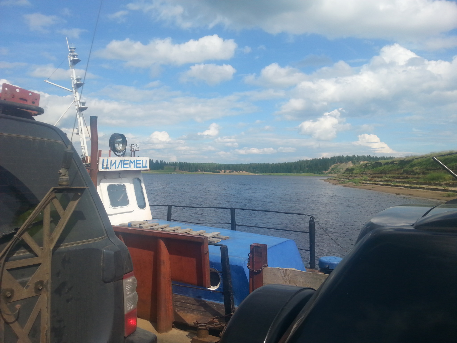 пришлось подложить брусок и привязать к внутренней ручке для заднего пассажира, крепко получилось))) Паром из себя представлял буксир с площадкой на 4 машины и лавками для пеших пассажиров и к нему пристегнута площадка на какое-то количество машиномест, дождались погрузку, первые из очереди начали заезд, машин капец как много, думаем всеж не влезут, и тут капитан почти матом орет в громкоговоритель «…я вам сказал на «Ивашку» джипы!», реально орал, на своих помощников, ну а мы, что, конечно обрадовались) Чуть меньше часа он огибал отмель, ну а дальше снова грунтовки…