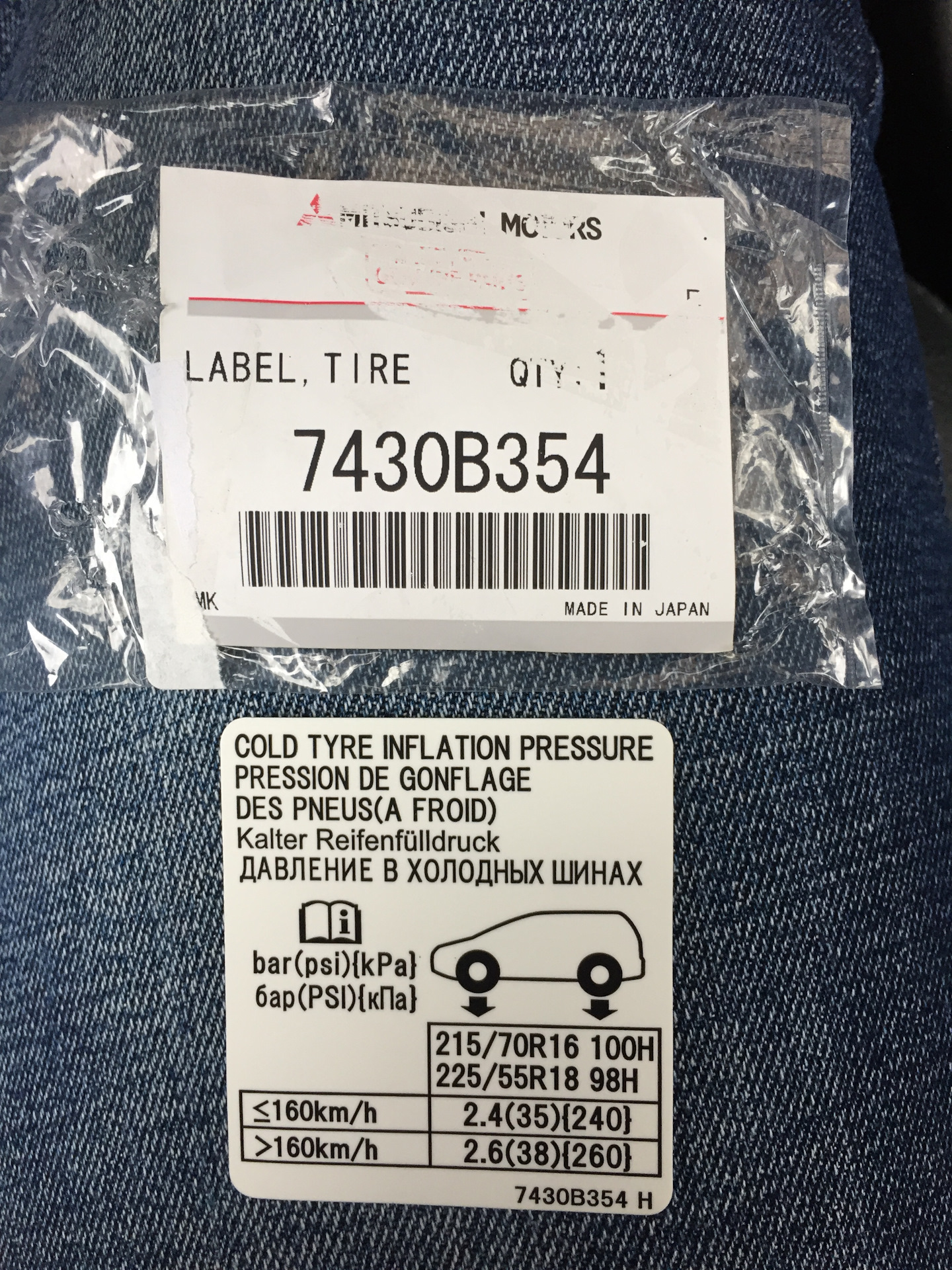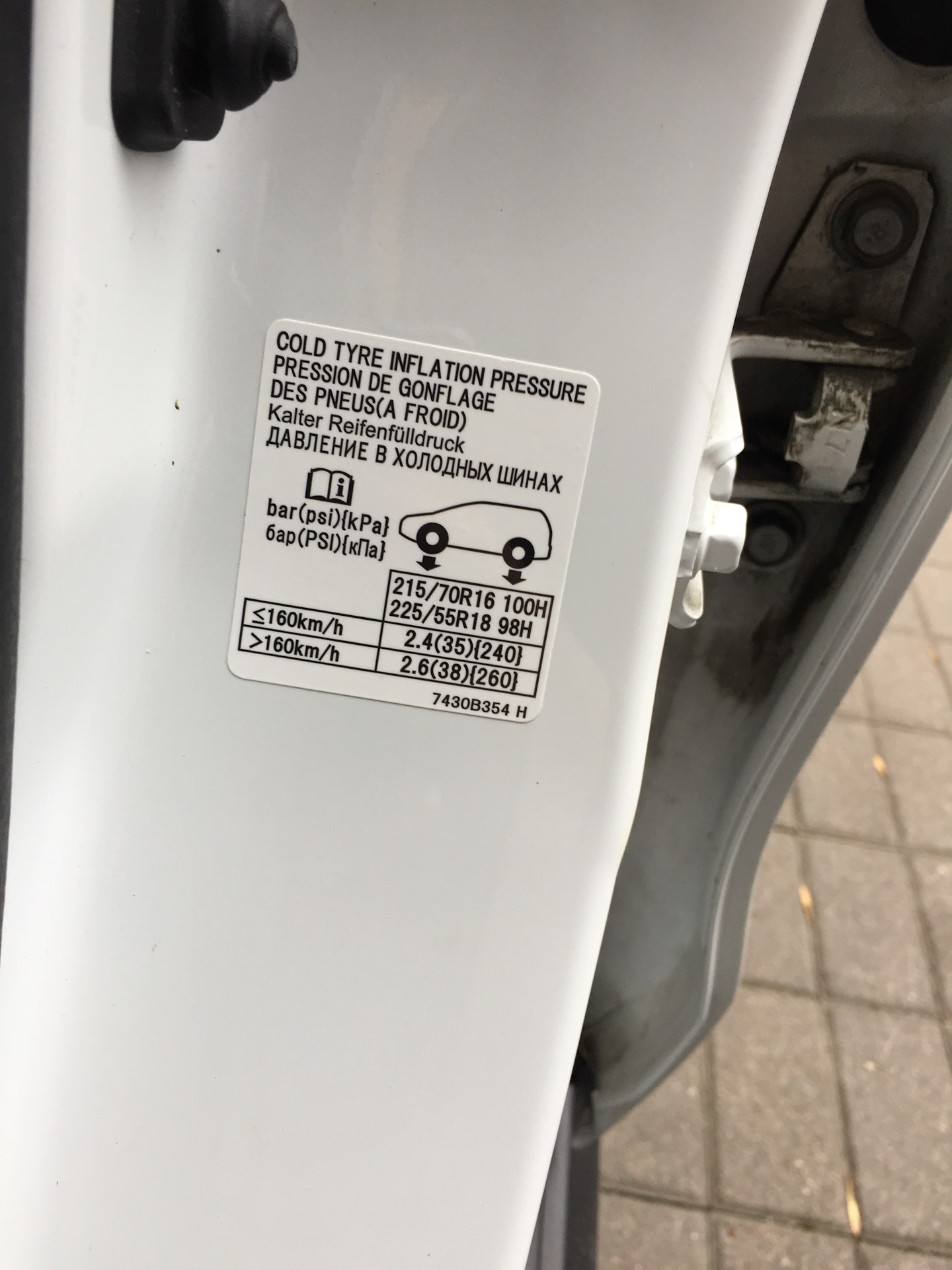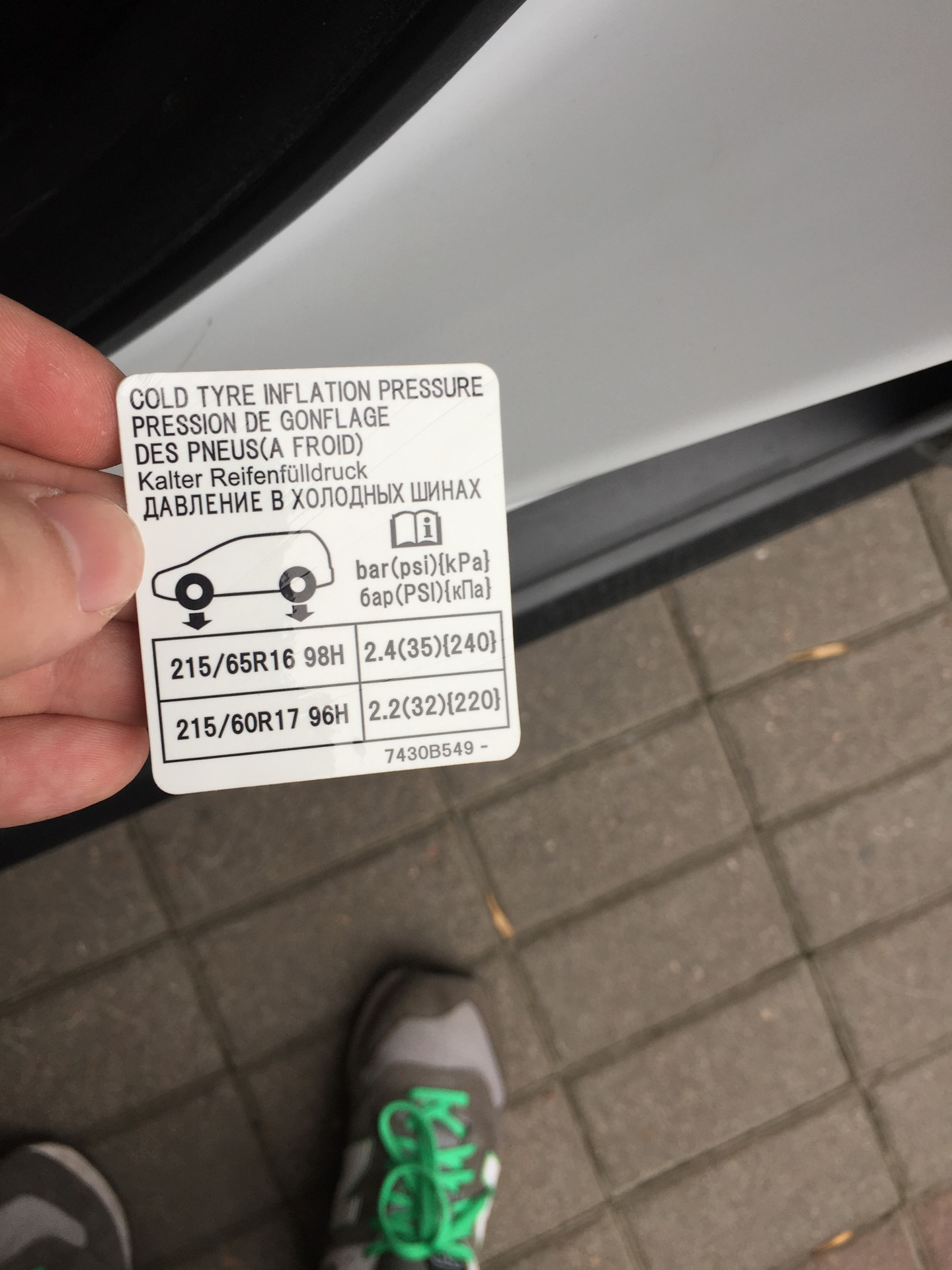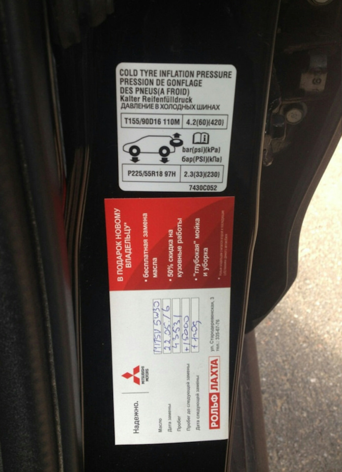 Наклейка в проем водительской двери (какая размерность шин и как накачивать)
