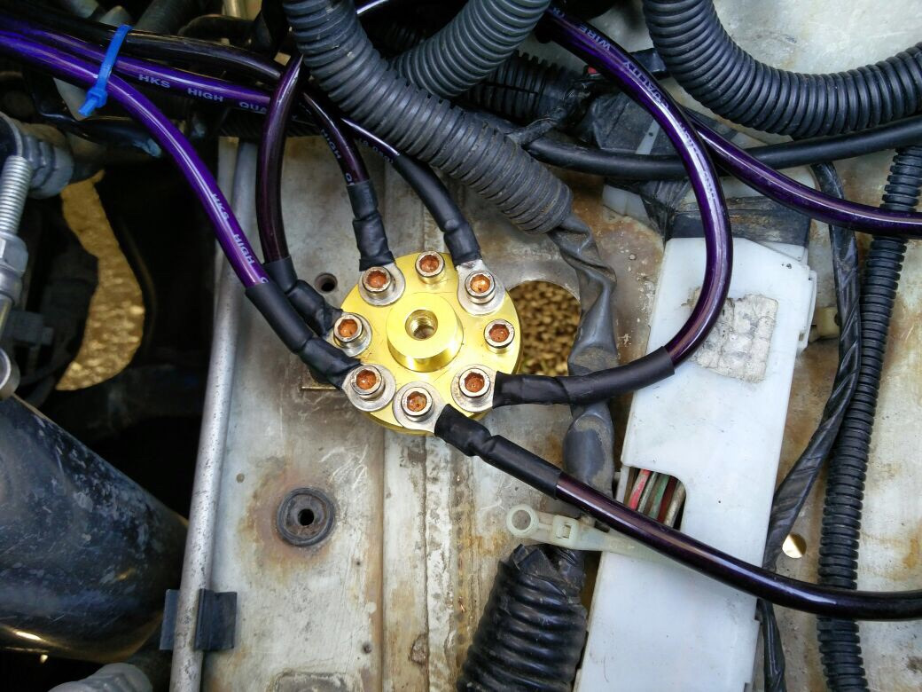 Про разминусовку ничего не скажу, сам толком не знаю куда её крутить, прикрутил болты на крепления катушек, впускной коллектор возле дроселя, и возле сбросника байпаса. Один кинул на массу HKS TWIN POWER
