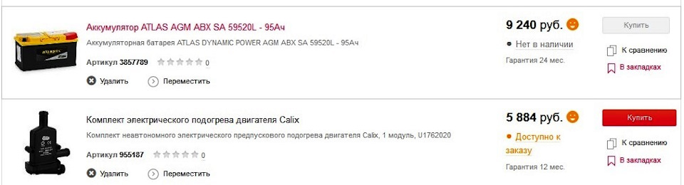 В итоге я решил остановиться на двух проверенных компаниях и мониторил, практически ежедневно, наличие у них этого аккумулятора.
