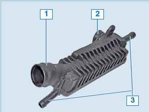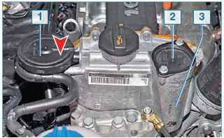 На режимах полных нагрузок, когда разрежение во впускном трубопроводе снижается, картерные газы из корпуса распределительных валов попадают в цилиндры двигателя через шланг, соединенный со штуцером корпуса, обратный клапан, воздушный фильтр, дроссельный узел и впускной трубопровод.