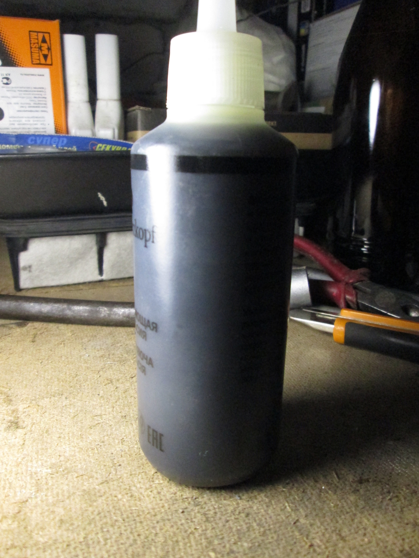 Первая пошла — залил, фильтр масляный — старый. Завел на холостых 10 минут, читал заранее, не газовать!, чтобы эта смесь мимо фильтра через перепускной клапан не поперла. Слил почти такая же цветом как старое масло.