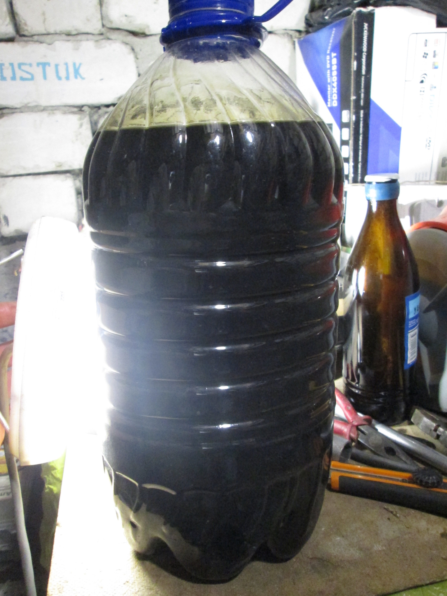 Далее уже наготове две бадьи 2 литра масла + 2 литра солярки в одной, 1.5 литра масла + 2.5 литра солярки в другой, плюс 4 литра промывочного масла.