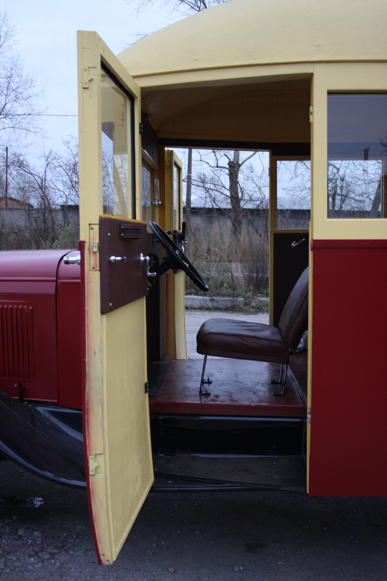 Сидение водителя было ниже всех остальных и не имело привычных регулировок. Пол деревянный, подножка — стандартная, ГАЗ-АА.