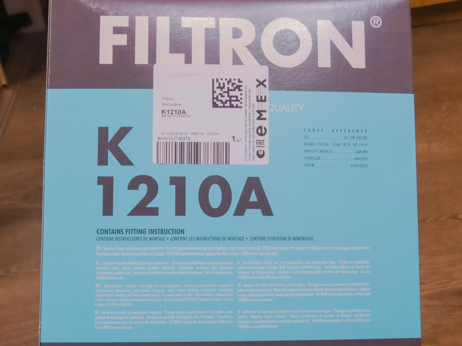 Угольный фильтр — Filtron, артикул — K 1210 A цена 220 руб