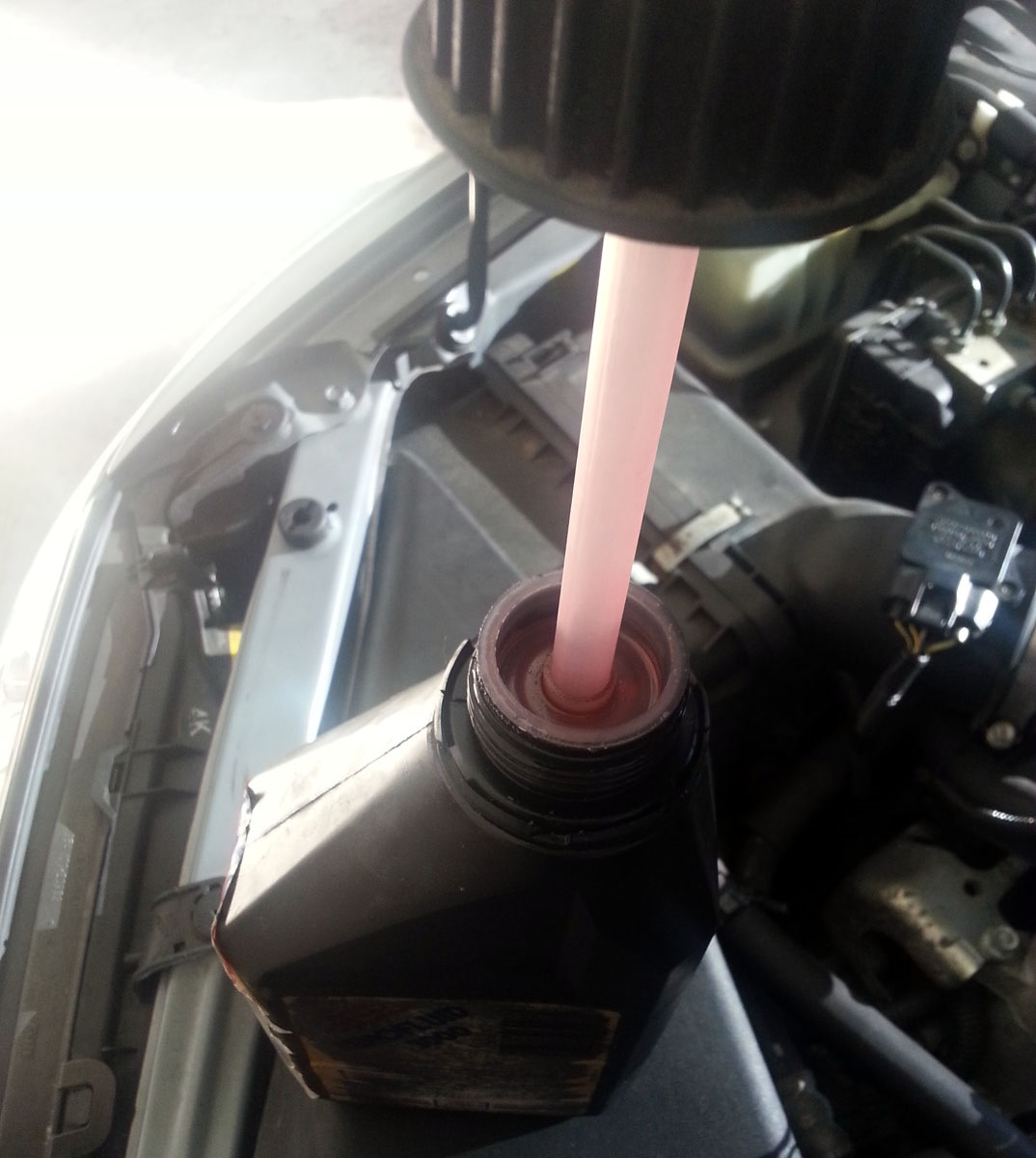В ГУР японцы как правило заливают тоже самое что и в АКПП. Жидкость в бачке была грязно-розового цвета.