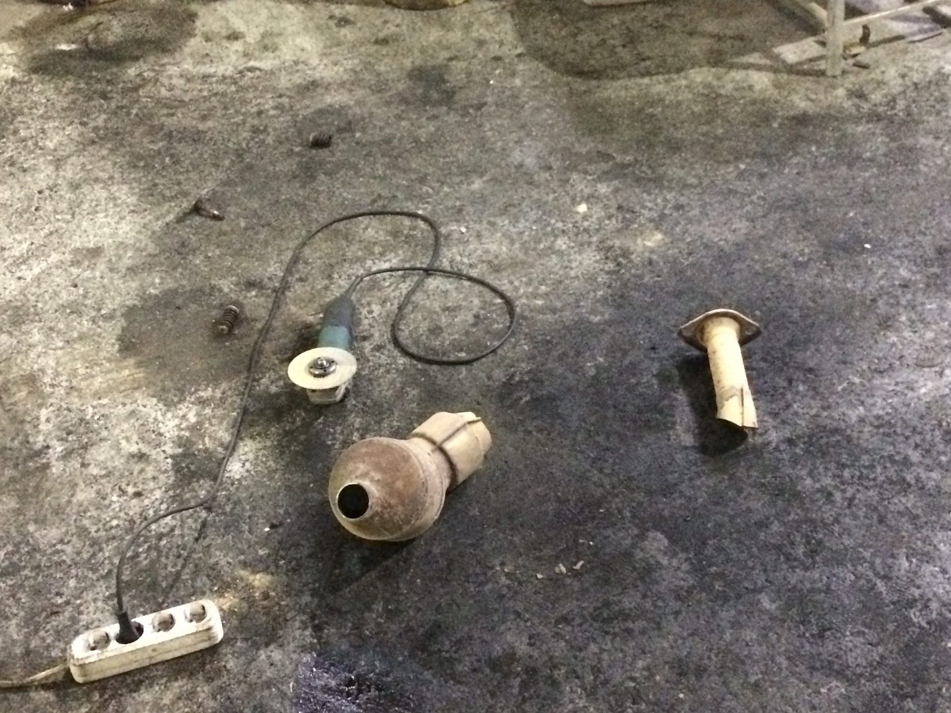 Далее машину загнали на подъемник, и отпили катализатор. Катализатор в наших машинах находится в довольно проблематичном месте на изгибе, что немного усложняет работу.