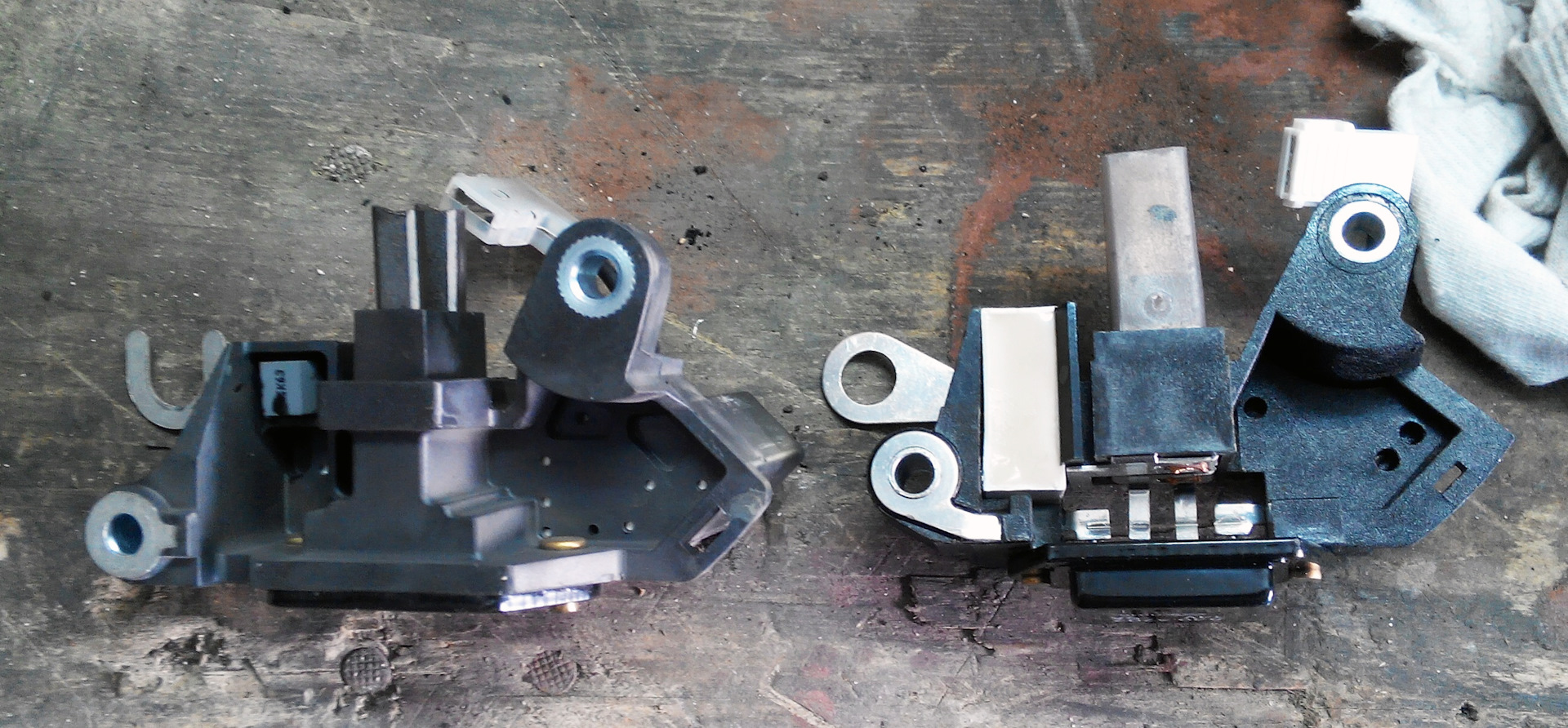 Настал подходящий день, и я, ругаясь на неудобное расположение генератора в двенашке таки выцарапал старый (вообще-то почти новый, так как генератор не так давно поставили) регулятор напряжения.