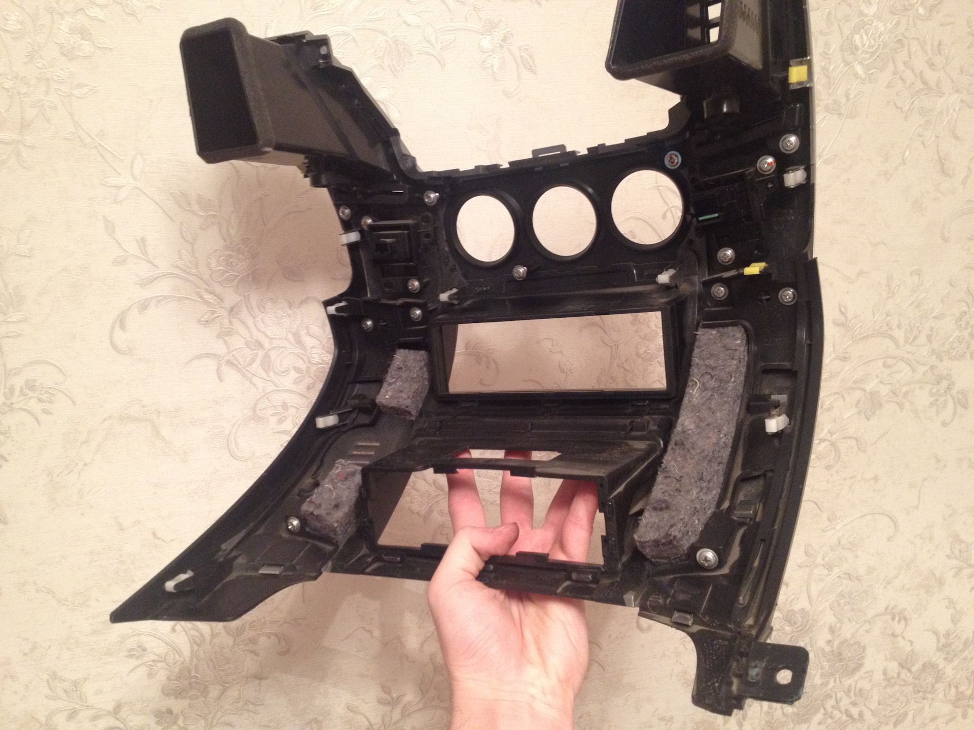 Далее смотрим !здесь!, благодарим Ярослава за отчет, говорим ему спасибо и прём дальше. Открутиль, раскурочиль. Да, сними черпятошный ящик и под срулём отчепи эту стеночку, ну ты понял. Раздается разной степени громкости "хрусь", "хрясь" и "чпойньк" и вся эта центральная передняя панелька остаётся висеть на фишках климат контроля, аварийки, прикуривателя с кнопащьками и лампочки отключения подушки безопасности пассажира. Отчепил- красаучег, Уася!