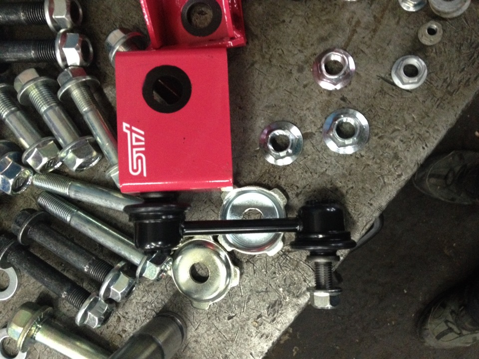 Стойки заднего стаба шли в комплекте с квадратными розовыми кронштейнами. Где-то читал, что они одинаковые с Легаси какого-то поколения