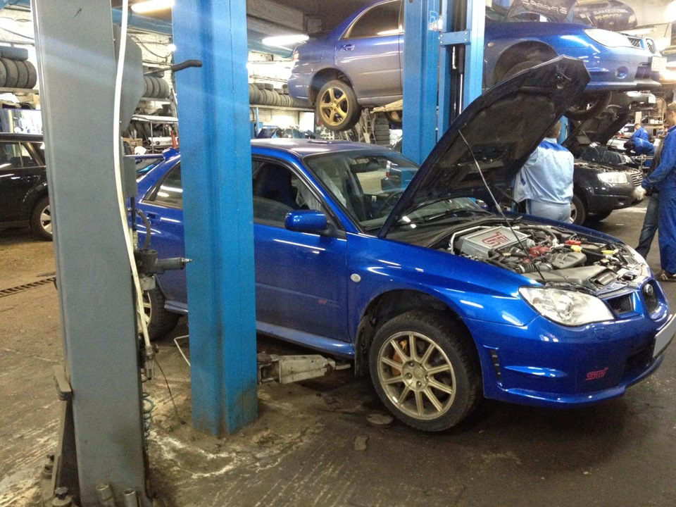 Собрав все железки в одну кучу и определившись со временем, решил попробовать замену осилить самостоятельно. Но поразмыслив, понял что достаточными мощностями, для такого объема работ — ввиде места, болгарки, гайковертов и всего прочего — не обладаю, поэтому выбор свой остановил на ближайшем для меня Субаринном сервисе. В назначенное время примчал, и понеслось…