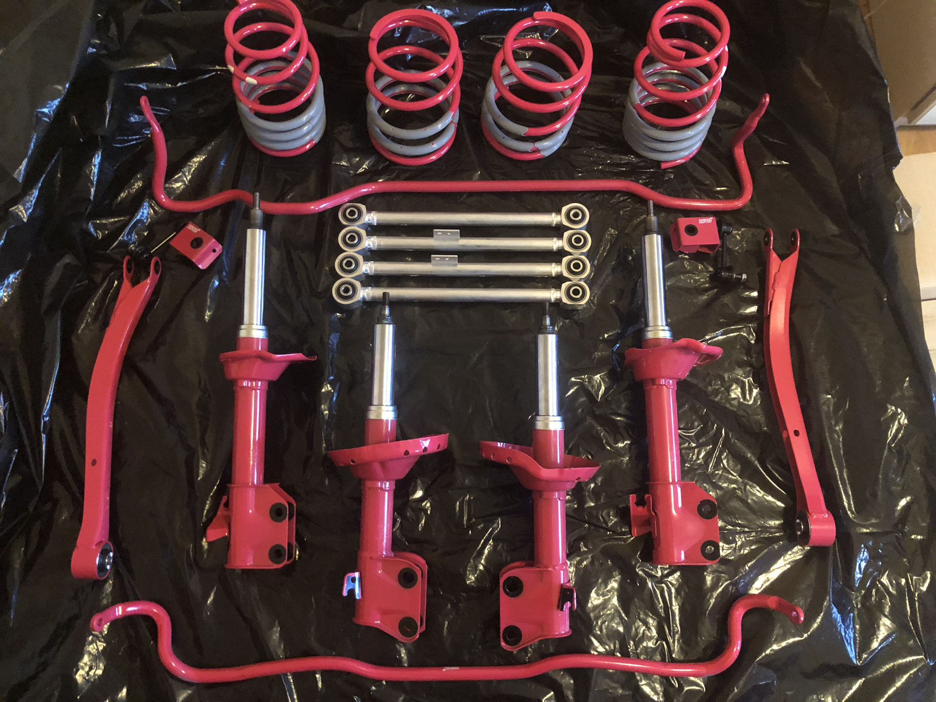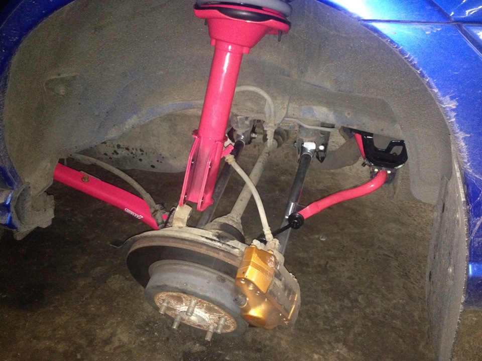 В подвеску я полез из-за аммортизаторов, читал/выбирал и т.д., а потом пришла мысля — почему, если я ставлю розовые стойки/пружины, то и сразу не вонзить все остальное так же от Ra-R?! В итоге, я получил полностью новую стоковую RaR-ошную подвеску.