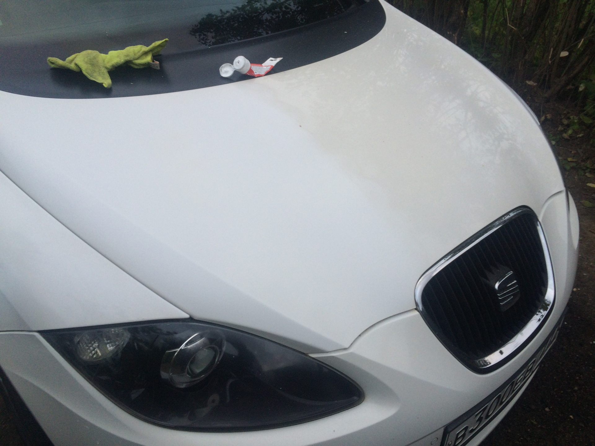 В итоге во время полировки антицарапином бывших вмятин на двери и крыле, я заметил что эти места отбелились!
