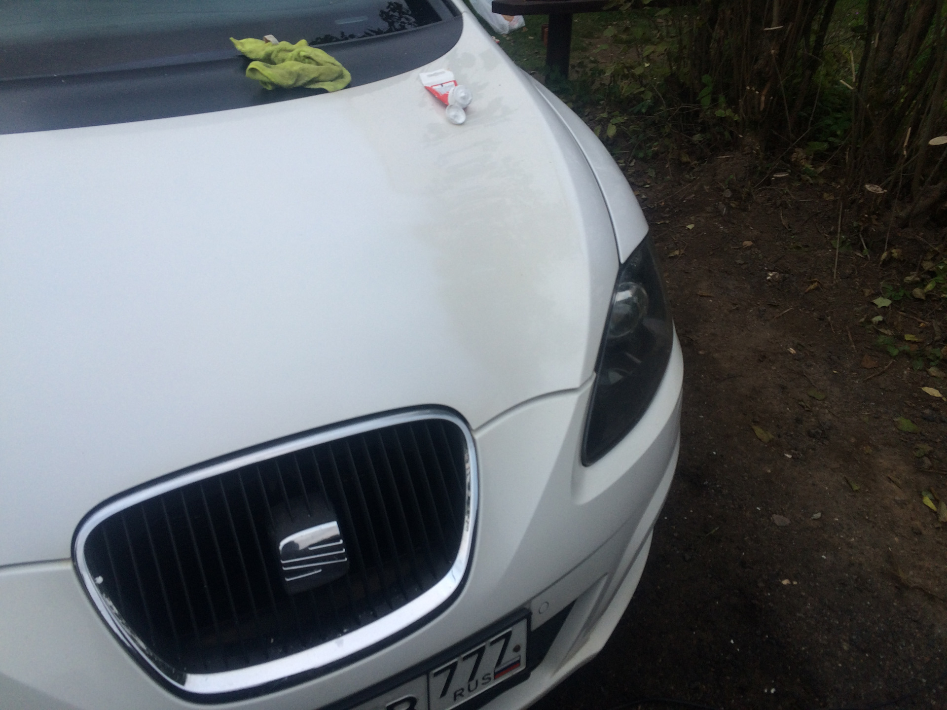 Вот тут отчетливо видно как отполирована левая сторона капота, а правая желтая!