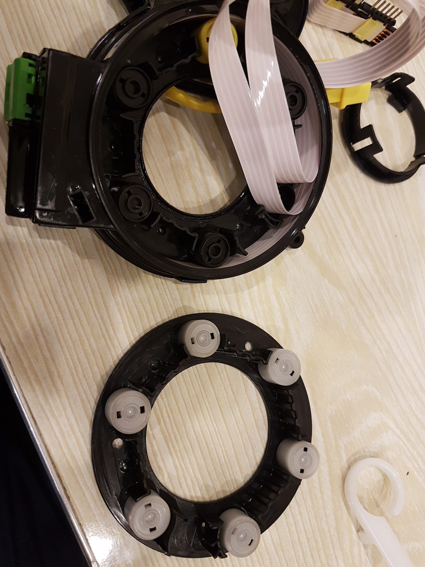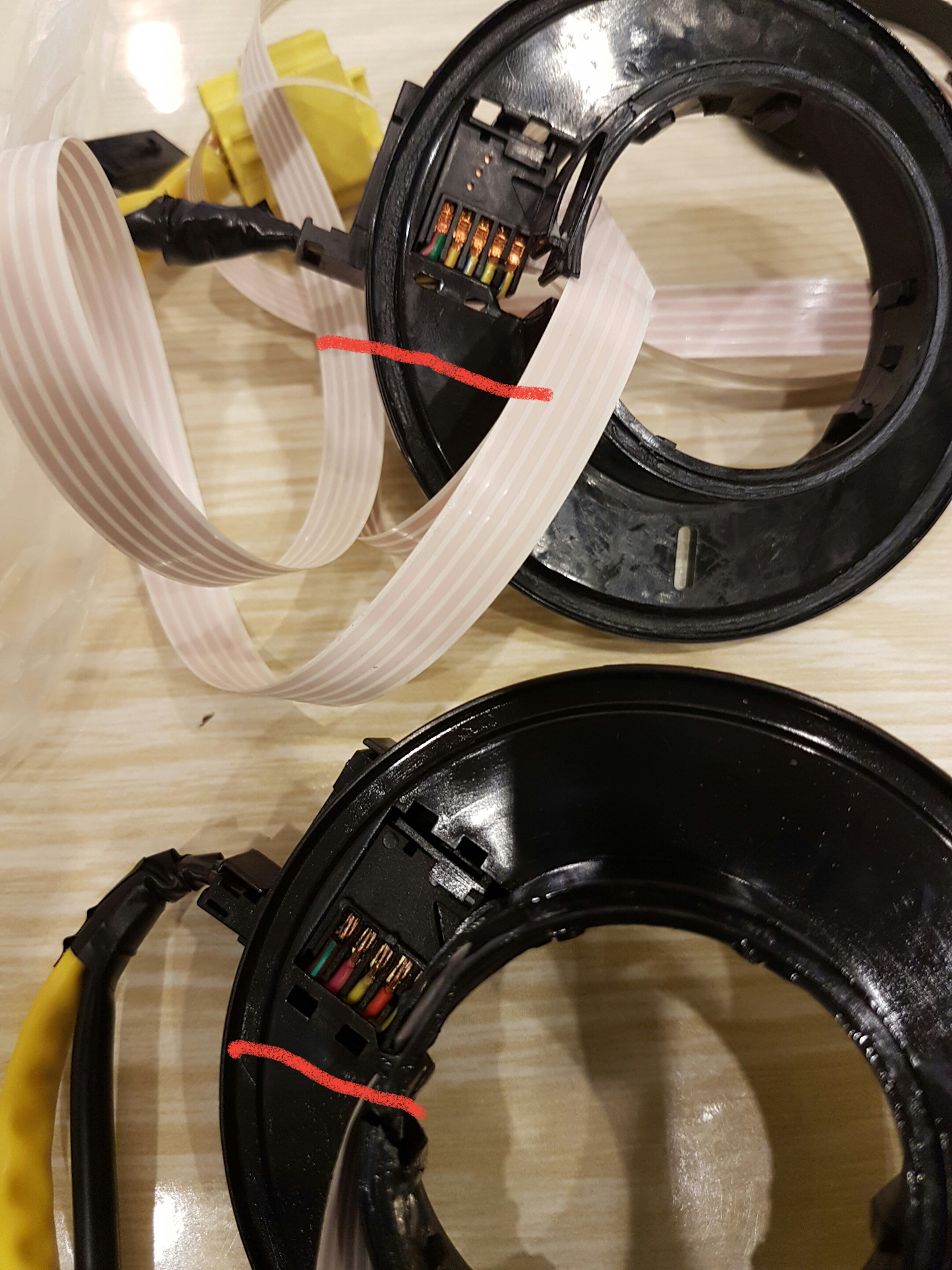 Поставил неоригинал (около $ 18-20 ). Всё отлично заработало. Но недолго, месяца 2 всего. Потом почувствовал сопротивление рулю на поворотах и новый шлейф порвался на три части. Вот…
