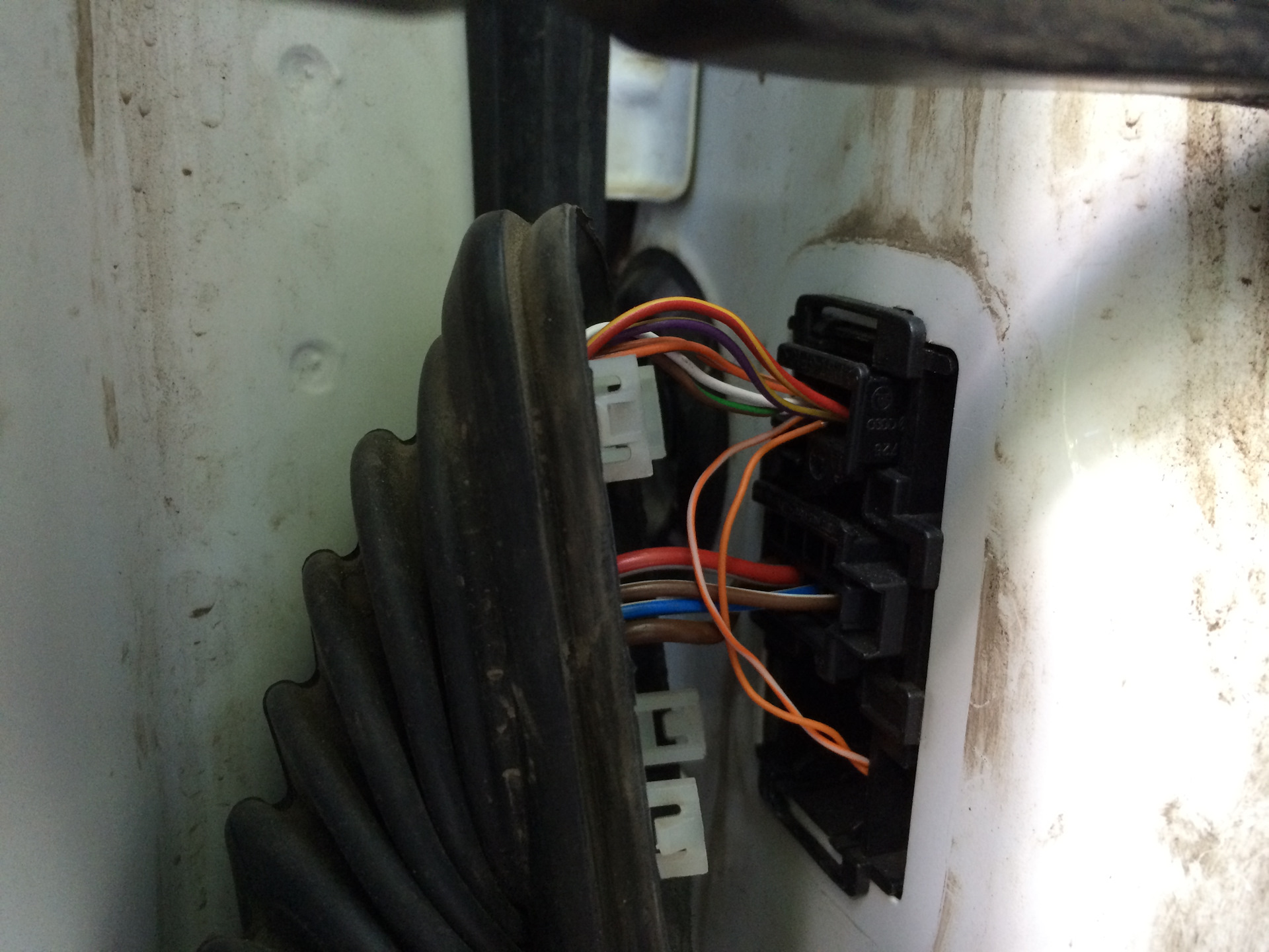 2) Теперь нужно подключиться проводами к CAN шине машины. У нас в машине используется 2 CAN шины (силового агрегата и комфорт), соединенные через gateway, меня интересует только шина Комфорт, которая позволяет открыть/закрыть стекла, управлять центральным замком, музыкой, кондеем и др. Лучше всего к ней подключить в двери, резать провода не нужно, просто в дверную колодку запихиваем еще 2 провода.