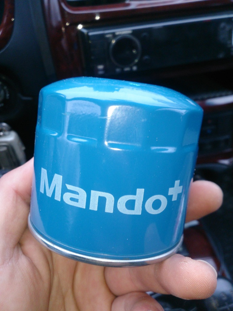 Дождавшись пошел сливать, подставил таз и вуаля… масло слилось все до капли! Взял новый фильтр мандо+, других не было, а ждать когда придет не очень хотелось. Думаю не хуже оригинала или манн. Залил в него масла для пропитки, поставил и пошел делать работу дальше.