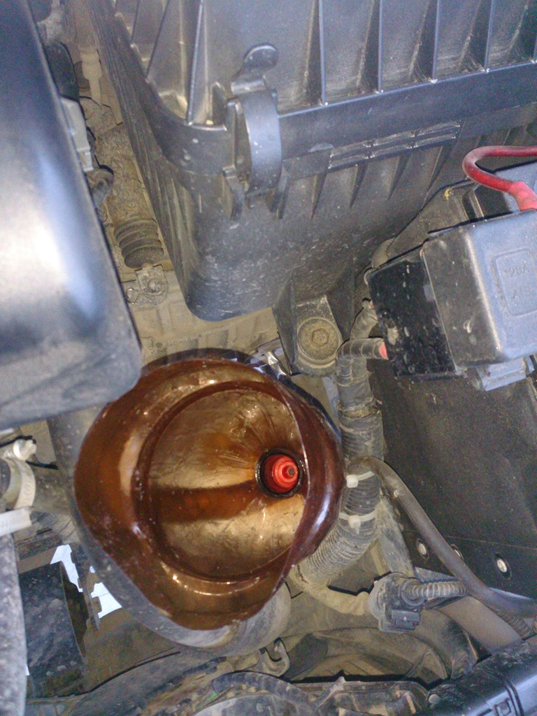 Вообщем все прошло удачно, не капли мимо, но тут в самом конце, когда уже собрался закрывать капот случилась не приятная штука