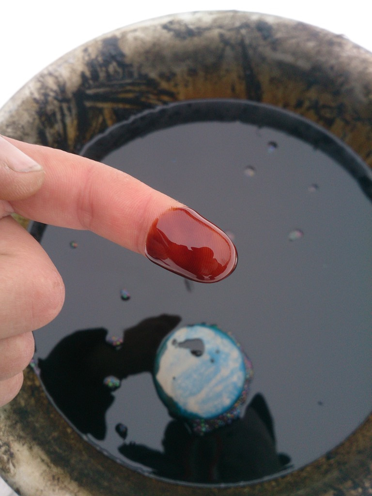 Слитое масло далеко уже не светлое, но все же еще не совсем черное!