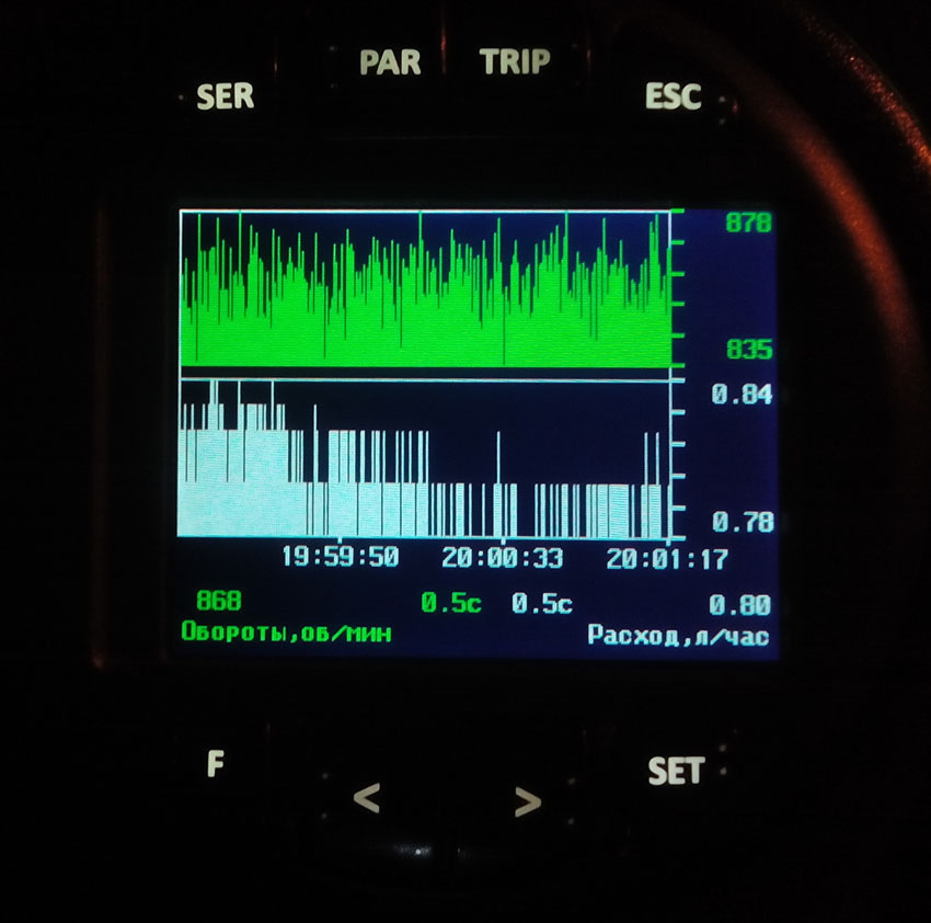 И потом включил штатно 2ю скорость отопителя и габариты, потом выключил отопитель, на ЛОГе сразу виден результат расхода.