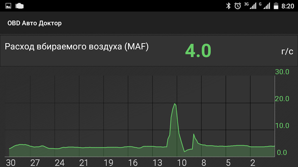 Попробую ЛОГ заснять. У меня правда расход воздуха в кг/час — на ХХ около 9 кг/час выходит.