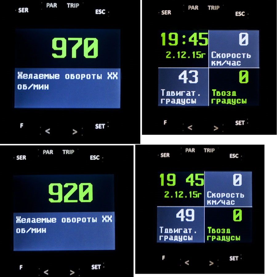 Вот уже более менее горячий мотор, а когда было минус, то желаемые могут быть 1250 например. Как пример четыре фото двух режимов: с прогревом до 43 и до 49 градусов.