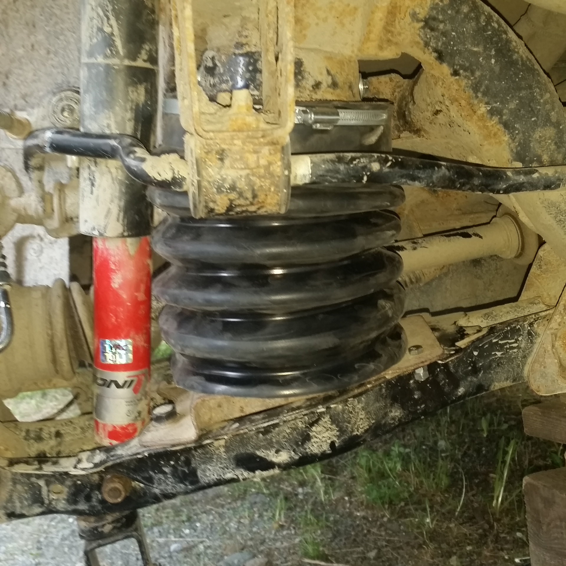 Отличная идея, отличная реализация, и главное уже есть, не малый, опыт эксплуатации! Я себе переделал посадочное в нижнем рычаге под пружину от ML, но пневма- это высший пилотаж! Амортизаторы кони(которые на фото) с отбойником внутри? есть номерок?