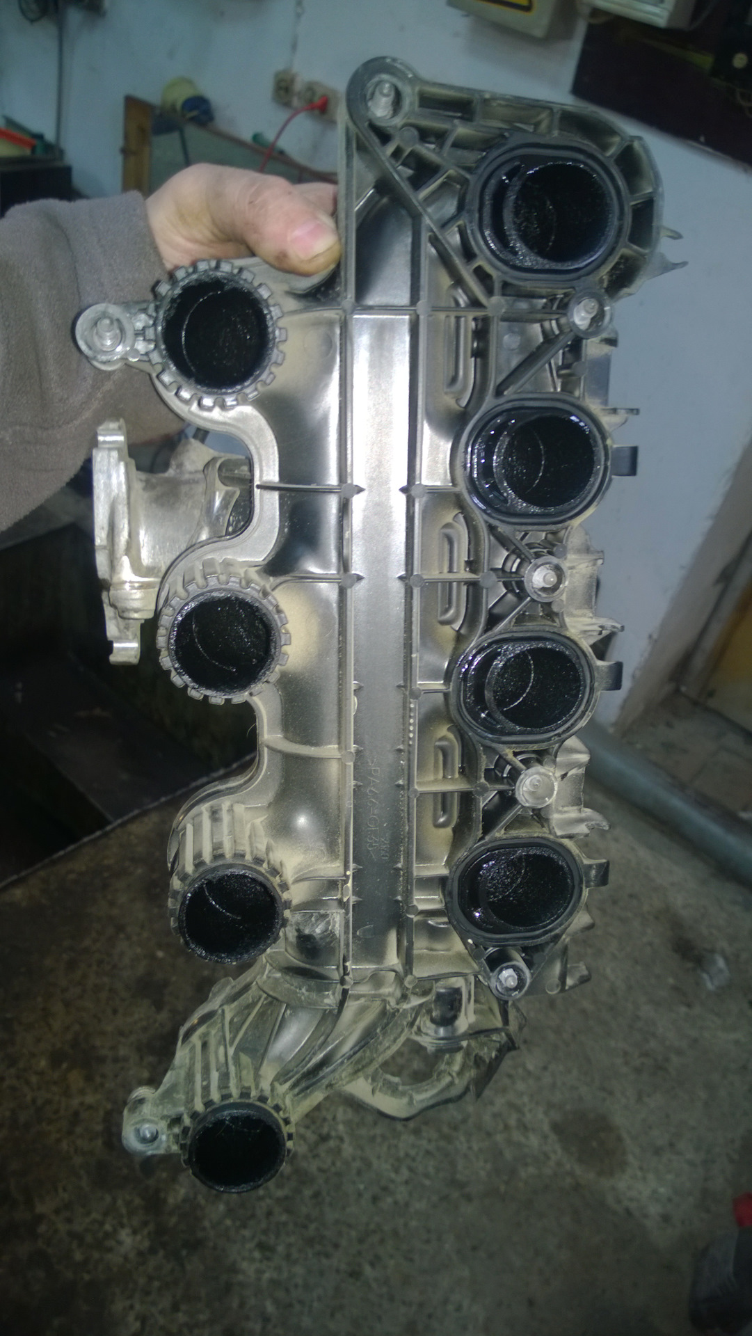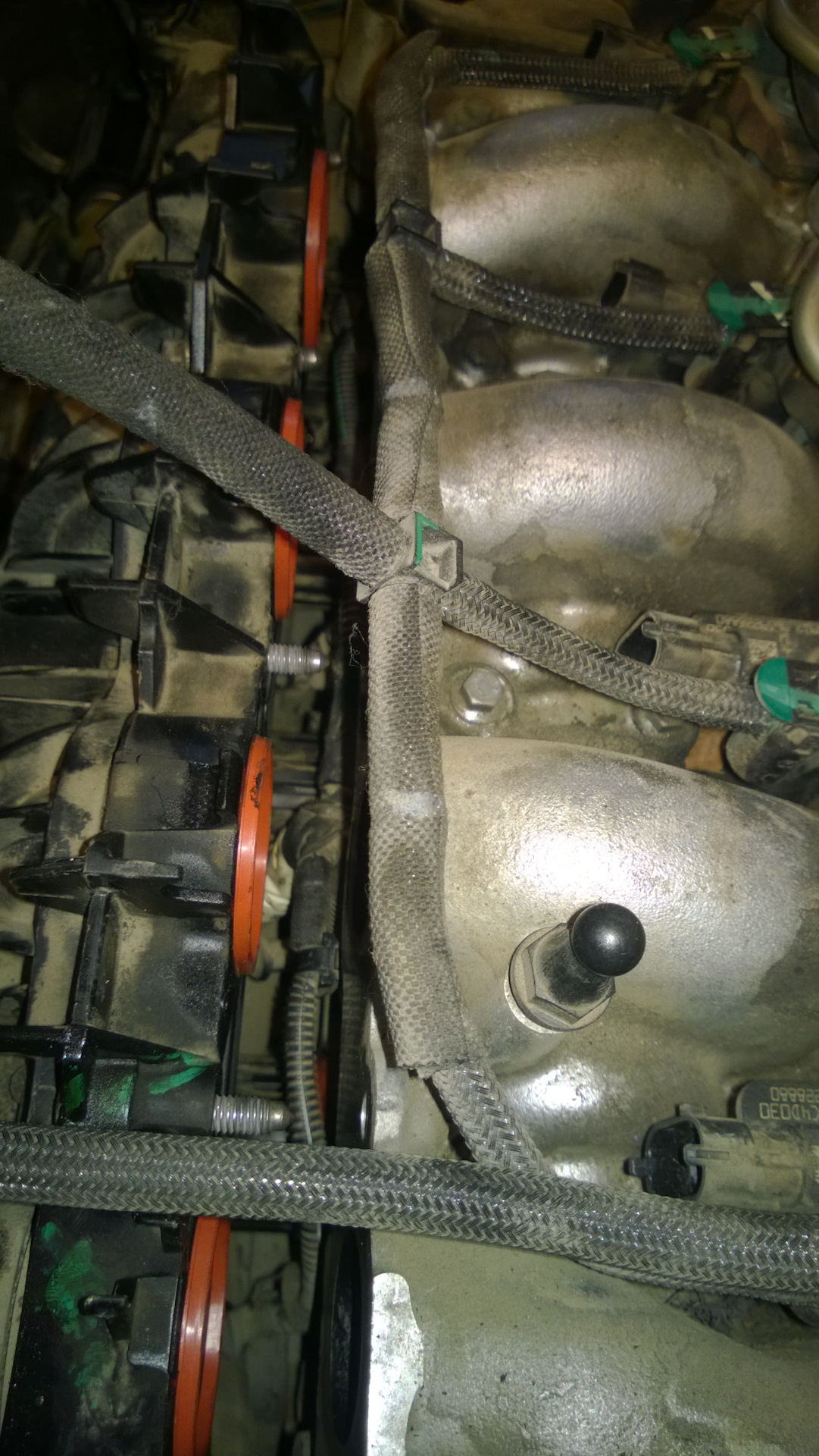 Далее откручиваем 4 верхних болта и вроде 3 нижних от пластикового впускного коллектора и аккуратно его оттягиваем от блока цилиндров